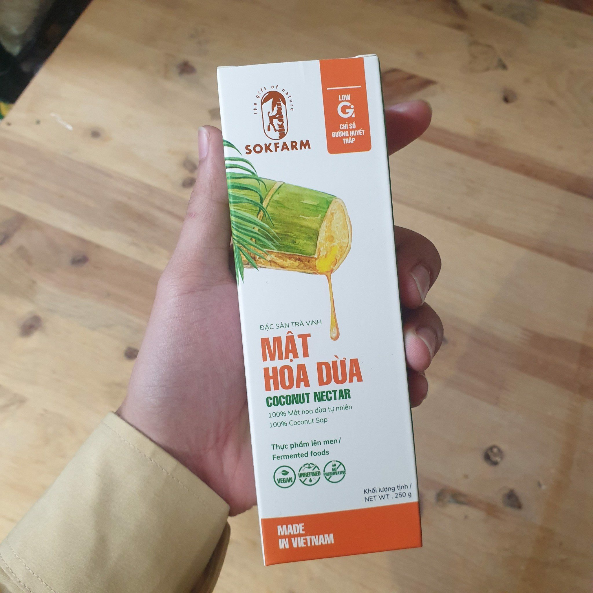 Mật hoa dừa Sokfarm là sản phẩm được chế biến từ 100% mật hoa dừa tươi bằng công nghệ CÔ ĐẶC CHÂN KHÔNG. Sản phẩm có vị ngọt thanh, mặn nhẹ của khoáng chất và hậu vị chua đặc trưng do quá trình lên men.